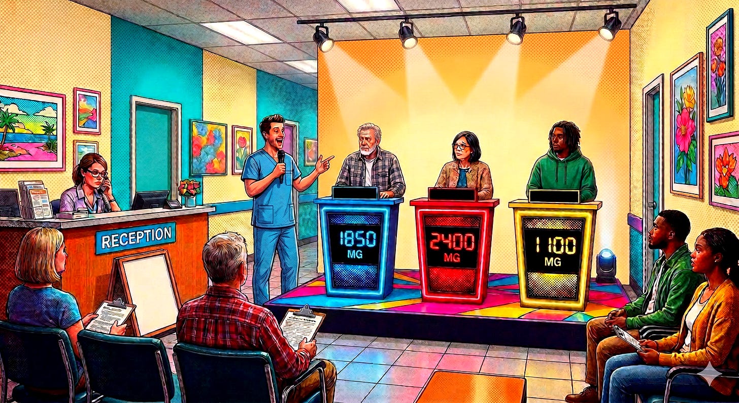 Not to be outdone, Dr. Salmon Filletsk tried a version of Who Wants to Be a Millionaire in his office, which was a colossal failure. For one, it took even longer to complete than the average patient waiting time. And more importantly, nobody could get past the first question: “How many years does it take to become a practicing doctor?”